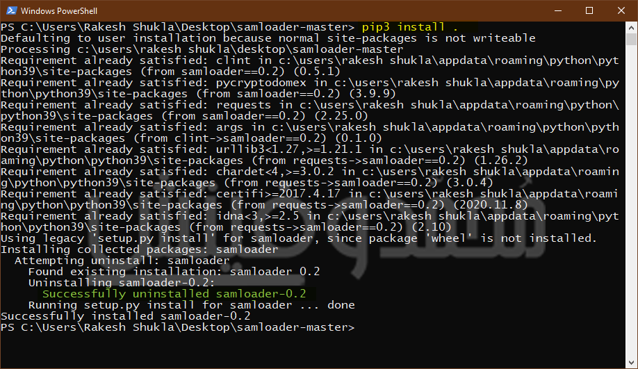 - الآن ستحتاج لكتابة سطر الأوامر التالي لتستطيع تثبيت سكربت Samloader على الكمبيوتر: