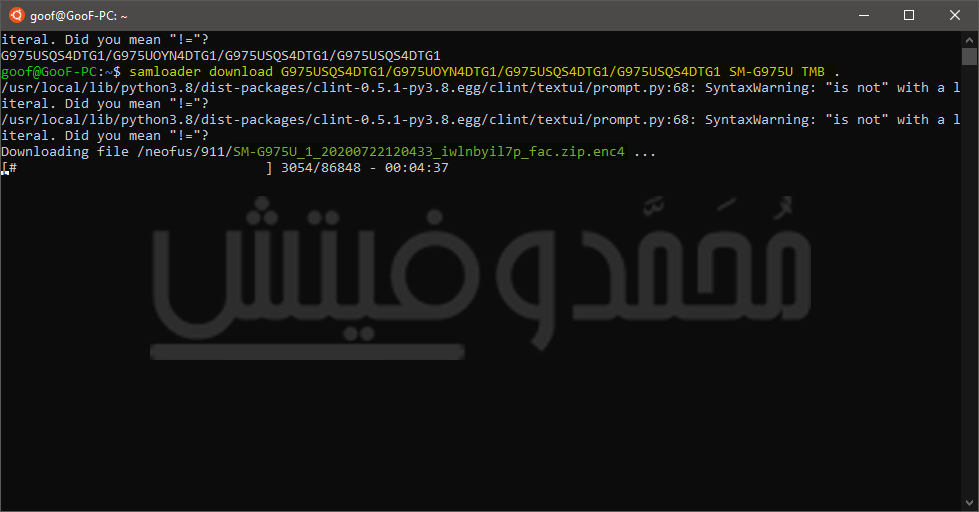 بما أنني قد قمت بشرح تفصيلي مدعم بالصور لاستخدام هذه الأداة الرائعة بالأعلى، لا يوجد أي داعي لإعادة كتابة جميع هذه الخطوات مرة أخرى. لذا، إذا ما صادف أنك مستخدم حالي لأحد إصدارات نظام لينكس، فبإمكانك إذًا تحميل روم سامسونج الرسمي بواسطة Samloader. بإمكانك هنا اتباع نفس الخطوات الخاصة بنظام macOS (أول جزء من الدرس)، وقبل تنفيذ الخطوات ستحتاج لطريقة تثبيت أدوات Python عبر الموقع الرسمي.